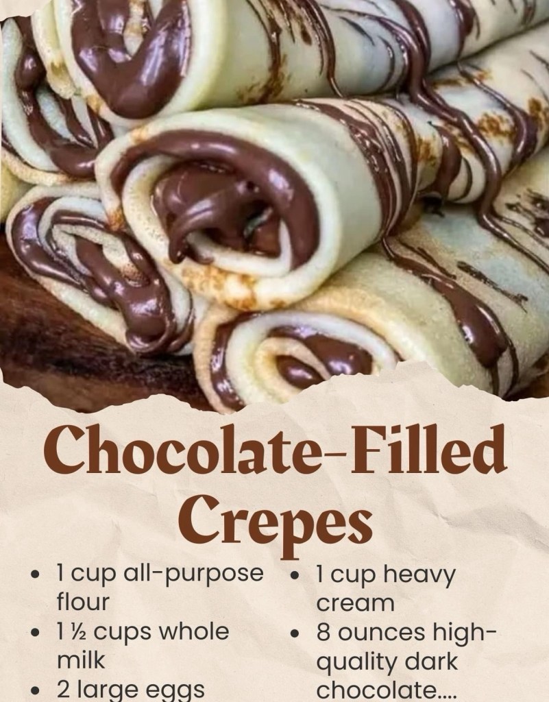 - Serve warm and enjoy your delicious chocolate-filled crepes!